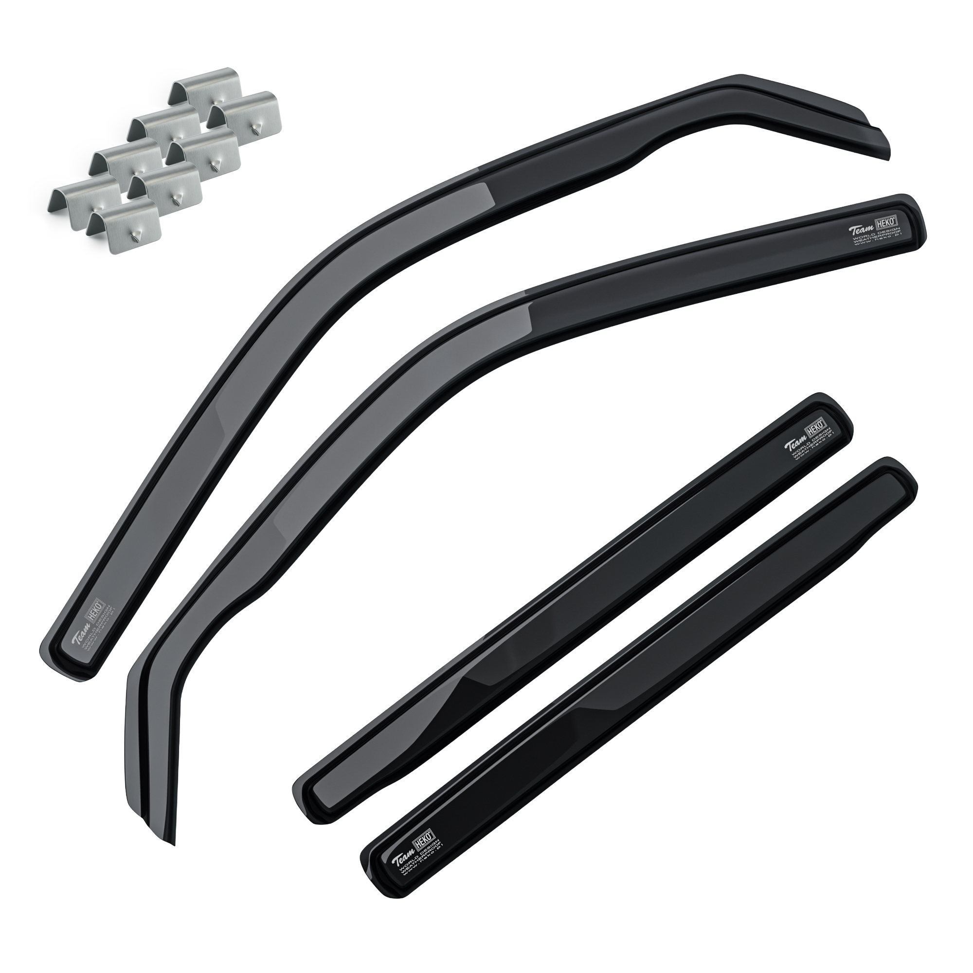 Owiewki Heko kierują wodę oraz rozpryski z szyb na zewnątrz, zapewniając lepszą widoczność i zwiększając bezpieczeństwo jazdy w trudnych warunkach pogodowych. Przemyślana konstrukcja ogranicza zabrudzenia bocznych szyb i poprawia komfort prowadzenia.
