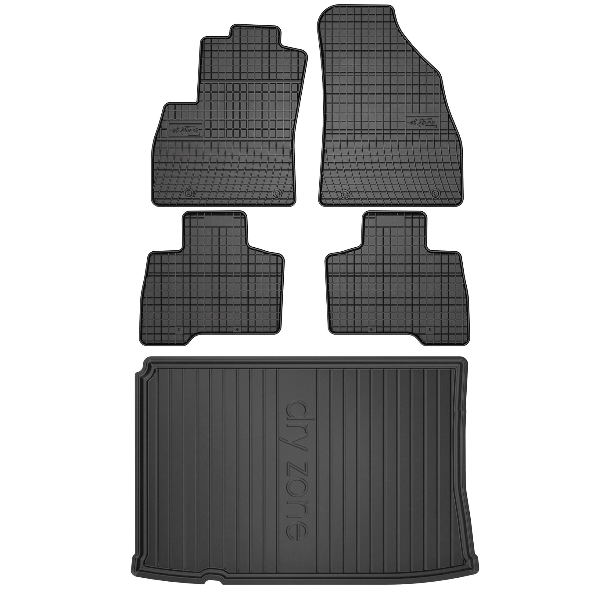 Dywaniki El Toro są idealnie dopasowane do podłogi, a gumowe kolce zabezpieczają je przed przesuwaniem.